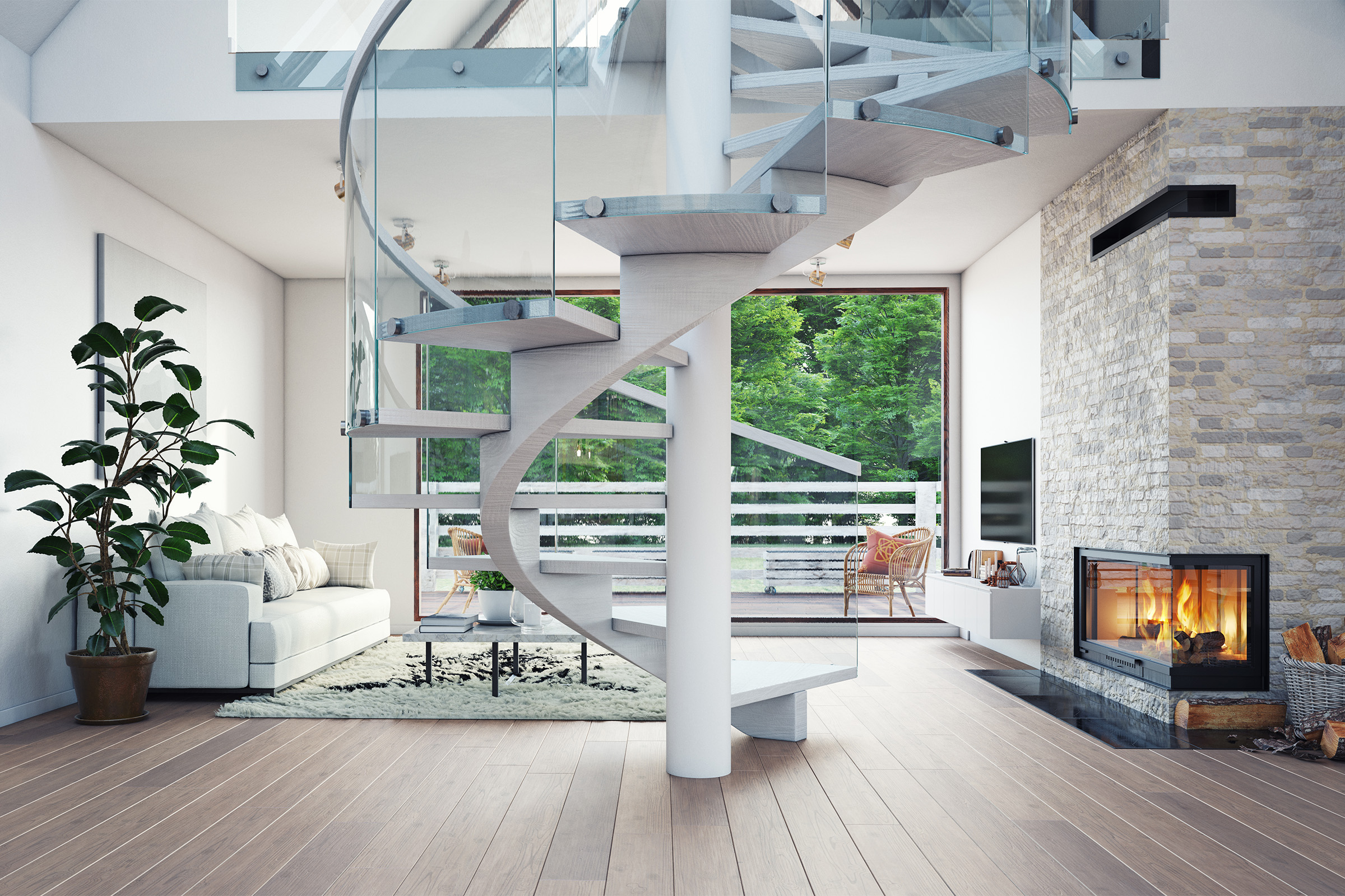 modern house living interior design. 3d concept illustration